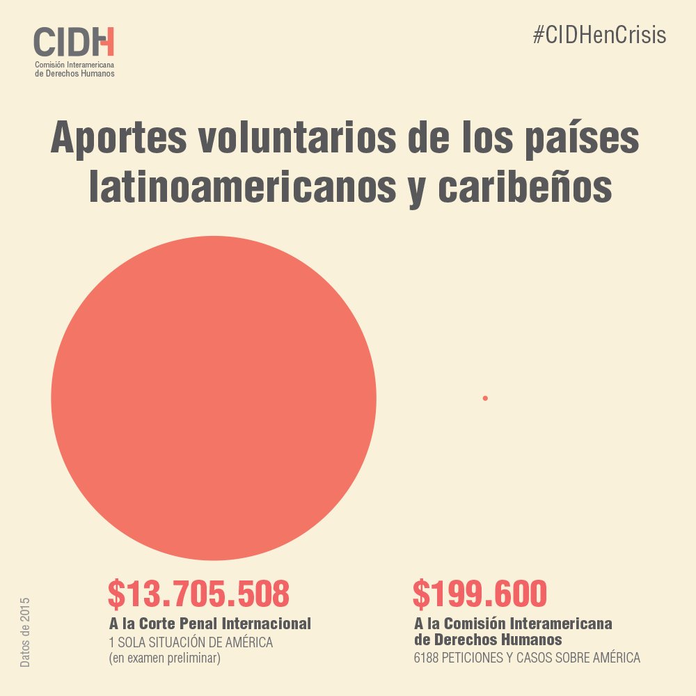 Al crear la CIDH en el marco de la OEA los estados miembros se comprometieron a financiar de manera adecuada a este organismo, para que cumpla con la función de “promover la observancia y la defensa de los derechos humanos y de servir como órgano consultivo de la Organización en esta materia.” Sin embargo, los estados no han cumplido con este compromiso. Con 8 millones anuales de presupuesto, el Sistema Interamericano de Derechos Humanos (SIDH) es “el Sistema más pobre del mundo” por debajo de los Sistemas Africano (13 millones de dólares) y Europeo (100 millones de euros). La escasa contribución de los países miembros de la OEA a esa organización explica en parte la exigua asignación al fondo regular que esta Organización hace a la CIDH (6% de su presupuesto). Sin embargo, las estadísticas sobre donaciones voluntarias (adicionales al fondo regular) muestran que tampoco por esta vía los países han contribuido de manera significativa, en comparación a donaciones hechas a otros mecanismos globales de derechos humanos.
