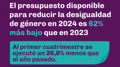 El presupuesto disponible para reducir la desigualdad de género en 2024 es 62% más bajo que en 2023. Al primer cuatrimestre se ejecutó un 26,8% menos que el año pasado. Accedé al informe “Un ajuste… Continuar leyendo Fuerte desfinanciamiento de las políticas contra la violencia de género