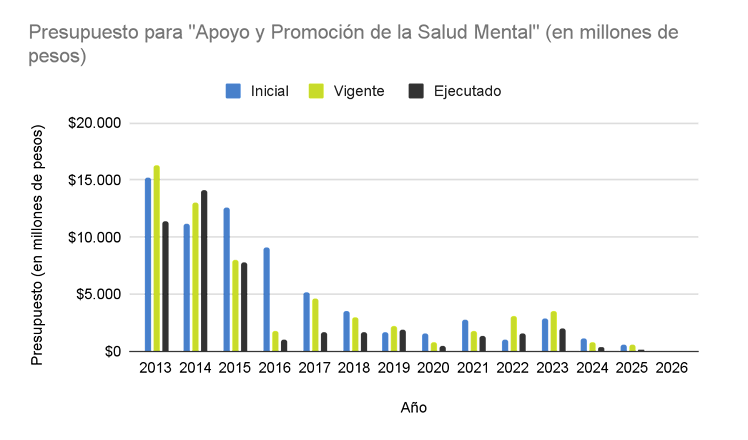 Asimismo, más del 99% del presupuesto total en salud mental se dirigiría a la SEDRONAR y a los dos hospitales monovalentes nacionales (Hospital Nacional y Comunidad “Dr. Ramón Carrillo” y Hospital Nacional en Red Especializado en Salud Mental y Adicciones “Lic. Laura Bonaparte”), mientras que las actividades del Ministerio de Salud específicamente orientadas a apoyar y promover la salud mental comunitaria representarían apenas el 0,04%.